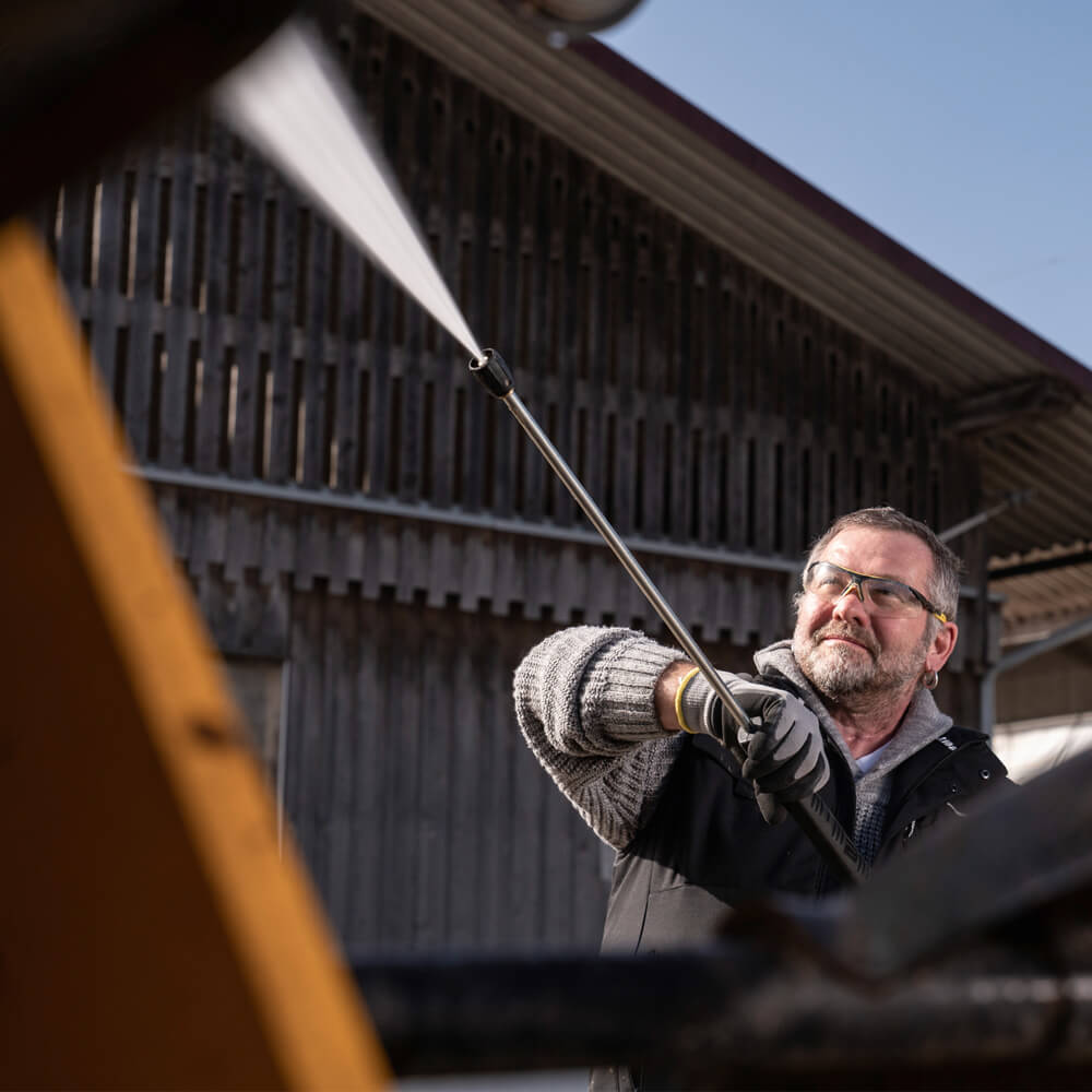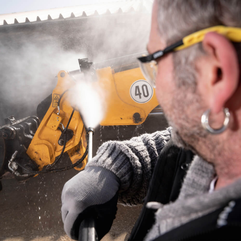 Com a água quente em alta pressão é possível dissolver eficientemente sujeira seca, por exemplo
