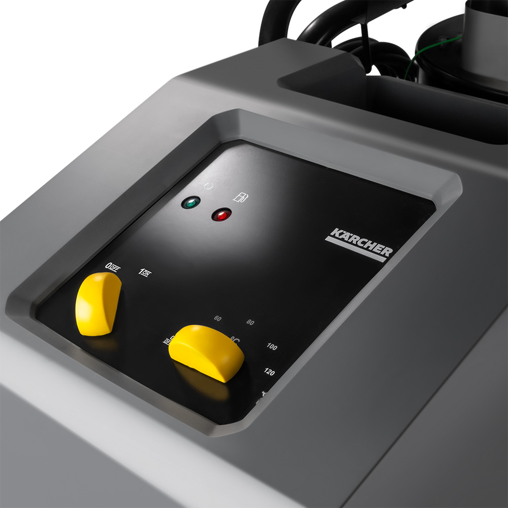 Este modelo é equipado com um sistema de transmissão por virabrequim, cabeçotes e bielas de latão, além de pistões de cerâmica de alta performance, garantindo resistência e baixo desgaste em uso contínuo e diário. O sistema de aquecimento inclui um duplo termostato e proteção contra falta de água, enquanto os dois tanques integrados com regulagem de dosagem no painel oferecem controle preciso sobre o uso de detergentes. A alimentação é trifásica.