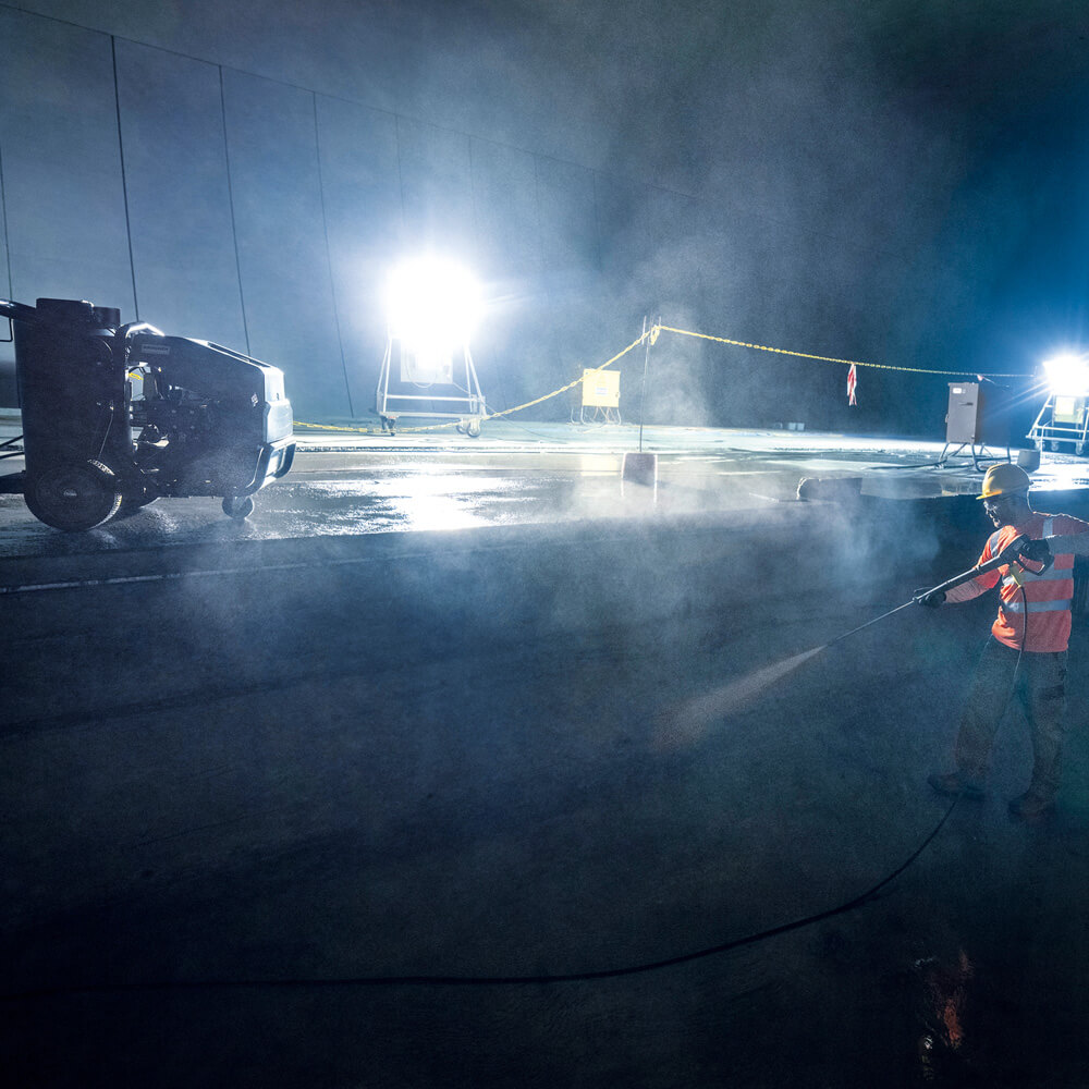 Com a água quente em alta pressão é possível dissolver eficientemente sujeira seca, por exemplo